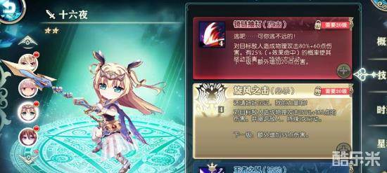 王者之风:强劲的对手,请多执教。战斗开始时,十六夜增加20%的闪避。