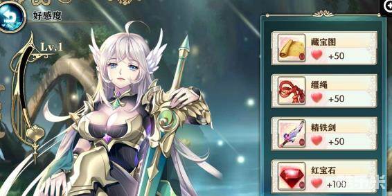 下面就由小编先来介绍下塞丝这个角色的好感度道具有哪些,正如图上所见的,分别为藏宝图、缰绳、精铁剑、红宝石,目前能增加丽娅丝好感度的道具就这些。
