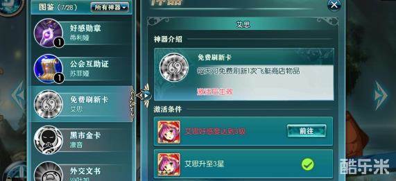 下面我们说说怎么解锁艾思的神器吧,激活艾思神器的条件是要与艾思的好感度达到3级,然后艾思的星级提升至3星哦。