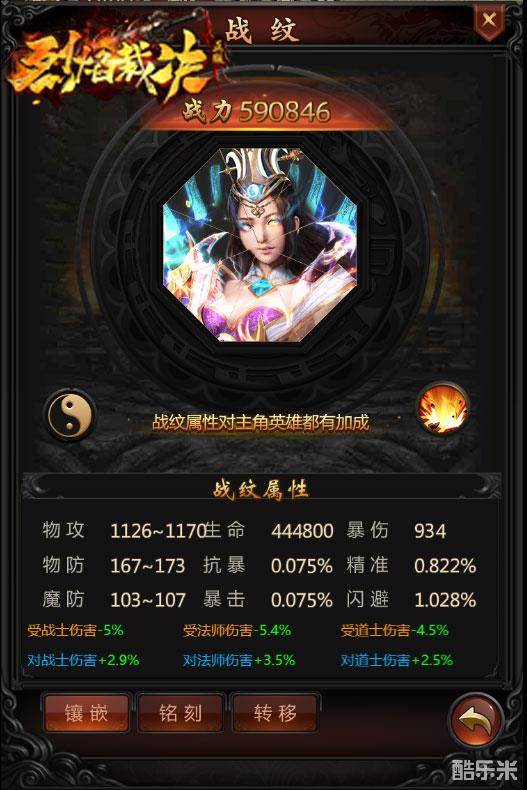 在37《烈焰裁决》中,论提升战力的方法,除了装备之外,战纹系统首屈一指。战纹属性对主角英雄均有加成,玩家可以通过穿戴战纹装备提高职业对抗属性。