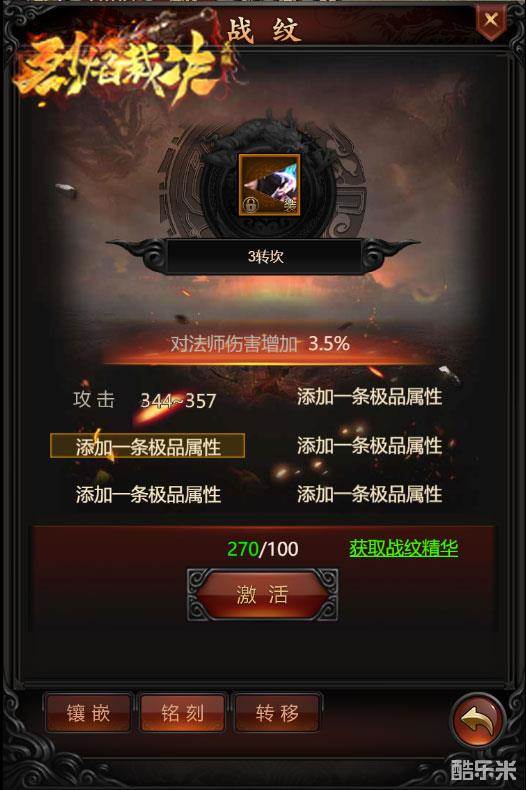 在战纹系统中,通过战纹铭刻,可额外激活四条新的战纹属性条目;通过战纹转移,则可以选择副战纹的极品属性替换到主战纹上。通过铭刻和转移,玩家可以打造属于自己独一无二的战纹。