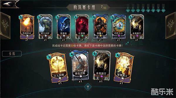 参赛后,系统将会随机卡牌供玩家选择,每次随机5张卡牌,参赛者5选2,一共选择15轮,这样选出30张卡牌组成自己的参赛卡组,所以构筑赛是一场势力与运气兼顾的比赛。