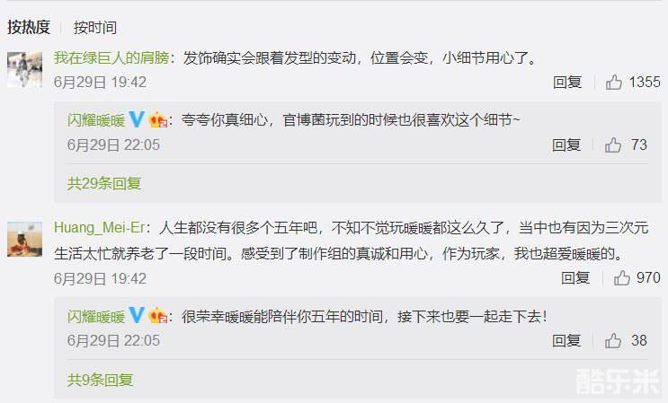 在公告的最后,官方表示这5年以来,暖暖的陪伴见证了团队的的欢笑与泪水,更像是他们的亲人朋友甚至是理想寄托。在成长路上,感谢粉丝一直以来的善意与温暖。不管是鼓励还是批判,官方希望能听到粉丝的声音,并将会不负期望,带来更好的暖暖。