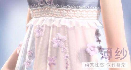 另外,在服装细节上,叠纸公司并没有简单随意处理和涂抹,而是根据不同物料的服装做了深度建模和绘画,力求展现服装最真实的质感。以薄纱为例,放大细节依然可见,连衣裙层次鲜明,轻盈的薄纱质感若隐若现……