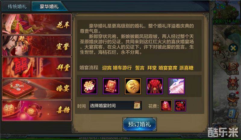 俩人结婚后,会收到令人羡慕不已的婚礼大礼包,传统婚礼可获得婚礼服饰、婚书、同心结奖励,豪华婚礼还可额外获得豪华婚礼坐骑,骑上后,就可以好好的嘚瑟一番了。