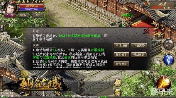 2.求婚一方在商城购买求婚戒指后,对话龙城中的NPC月老,申请结婚.这年头没有结婚戒指也想求婚?