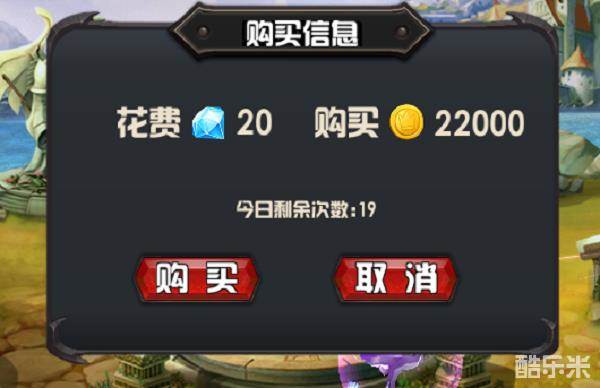 如果金币不够,大家可以利用钻石兑换金币哦。每位玩家每天可以购买20次。