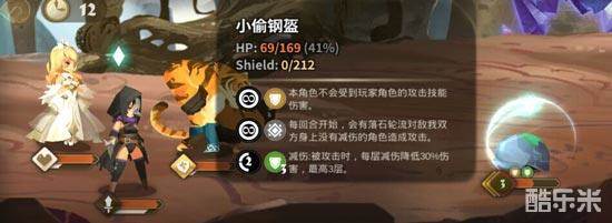 怪物介绍:两头小偷钢盔,无敌,靠黯月的一消去掉他们减伤让石头砸死。