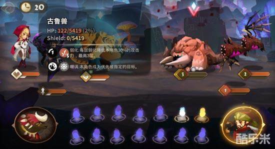 怪物介绍:前排古鲁兽,自带永久嘲讽、3层弱化与减伤,群体攻击(没弱化直接秒杀),后排两只蝙蝠,咕噜兽嘲讽存在就不会打你,攻击玩家也是秒杀。