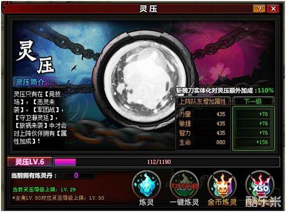 灵压系统在玩家7级时开启。灵压可大幅度提升玩家实力!