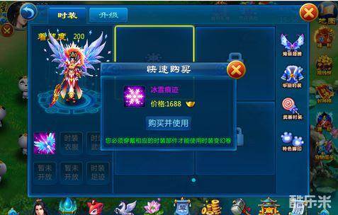 玩家们在人物界面可以看到自己的衣柜,然后点击衣柜中的足迹。看以看到那些你试穿过的各种各样的时装,翅膀、武器、衣服、鞋子,等等。它们都会一一的彰显在玩家们的面前,游戏中也推出了踏雪无痕的时装。玩家穿上他会有时装变幻的炫酷状态开启。