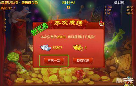 在优化之前只允许玩家们每天只能进入这个游戏一次,现在调整为玩家可无限次进入游戏,但每天仅一次领取奖励,双倍活动时间不变,如果对自己切的成绩不满意,可以再来一盘。在每周游戏会统计天降横财本周历史最高分数,然后给前10名发放奖励。
