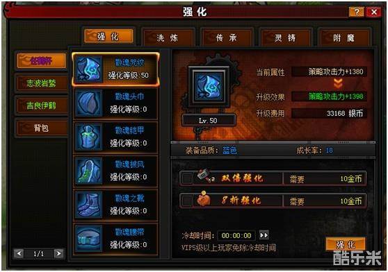 每个装备都可被强化,强化等级不得超过主角等级,强化消耗银币