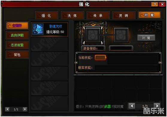 被灵铸的武器才可进行附魔,附魔需消耗附魔石,附魔后会将附魔石中的技能随机给予附魔的武器,而附魔石消失!