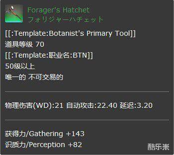 采集业IL70装备目前含主手工具及头部装备。IL70主手工具是版本2.2中继50级职业任务所赠IL55主手后的新一级别主手工具,头部装备为全职业共通。