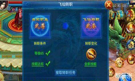 想要转职那么是有前提条件的,那就是你的人物等级要达到65级而且人物的技能需要全部学满,在玩家们转职的时候还需要完成一个转职的任务。大家需要不同的角色对应的转职职业,武尊=武圣、幻羽=羿神、天师=羲皇,在转职了之后技能就会进行相应的调整,就会出现一些新的技能。