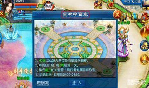 剑仙缘中有一些高等级的争霸赛开启,就像皇帝争霸赛一样,玩家们在世界等级达到60级之后,便可以在周日晚上8点~8点30分这段时间里参加皇帝争霸赛,前提是人物等级在40级以上,还需要拥有仙盟的玩家才可以参加。下面小便带大家看看这个活动的特色和玩法吧。