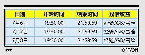 7.6-7.8,每天19:30-22:00开启经验、GB、冒险双倍收益!