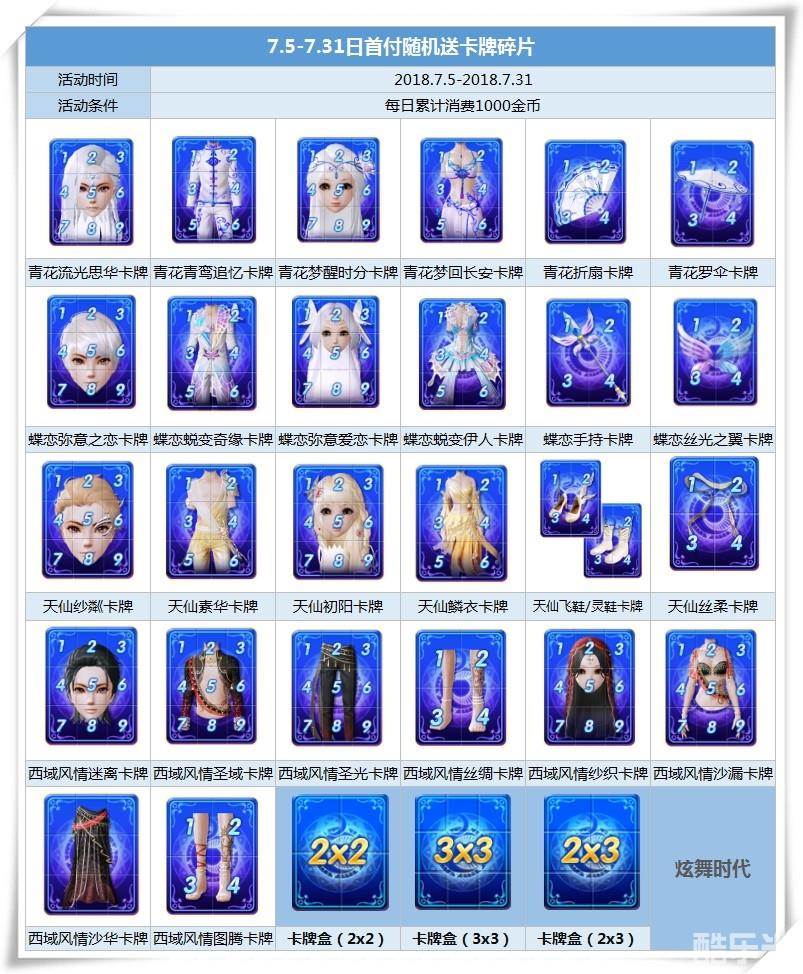 炫舞时代7.5-7.31日首付送卡牌碎片