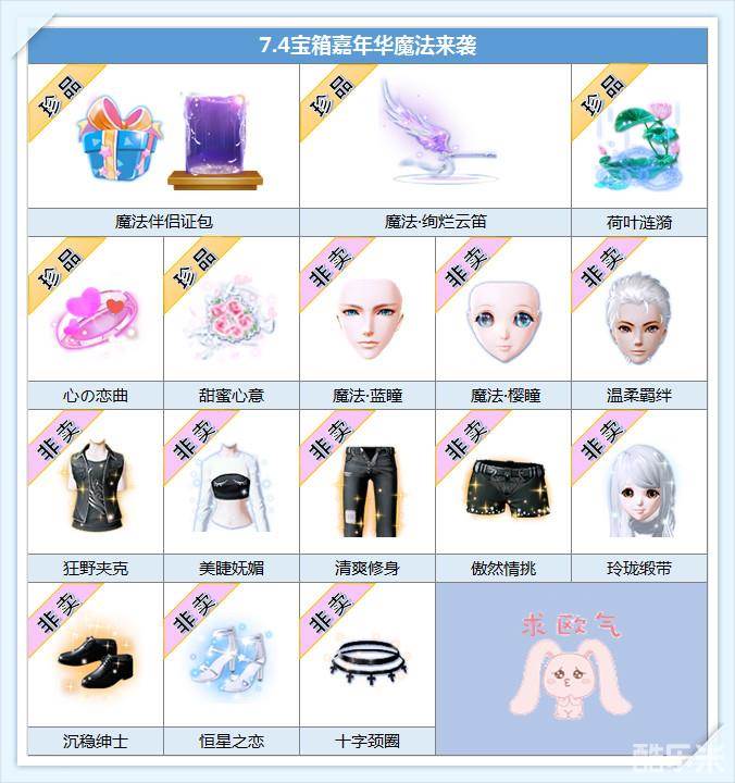 7.4起,宝箱惊喜更新!其中包括魔法第2弹精品哦~快和More兔一起享受魔法的盛宴吧~