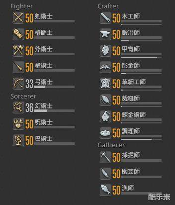 现在的等级,当然已经全是50的人也不少有机会白魔和诗人也想升一下2.3版比较闲趁着现在来拿制作和采集的IL70武器
