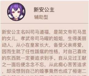 新安公主名叫司马道福,是简文帝司马昱的女儿,在这作为辅助型伙伴的新安公主有哪些技能呢,不妨一起了解一下吧。
