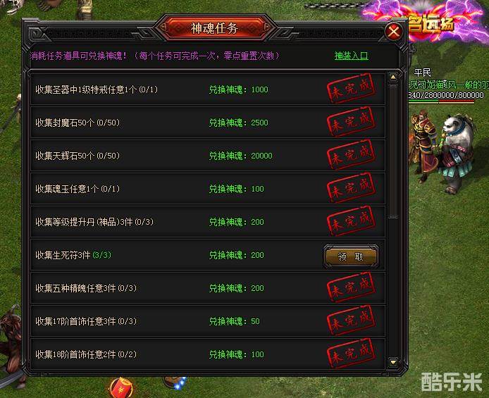 神器、神甲:可以获得海量属性加成,并且具有炫酷外观,可以通过神魂升级,神魂完成日常收集任务可以获得