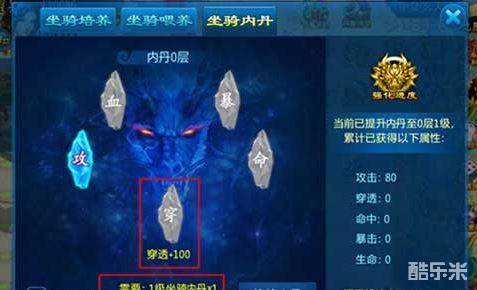 剑仙缘中有一个针对坐骑开放的系统,那就是剑仙缘的内丹系统。玩家们在游戏中的等级达到60级后便自己的坐骑便可以开启这个系统了。玩家们可以通过消耗坐骑内丹,可对坐骑进行修炼,从而提升人物各项属性。那么玩家们要如何获得内丹呢,小编来教玩家们一个方法吧,那就是玩家们可以通过秘境商店、封魔塔获取,低级的内丹可合成高级内丹。