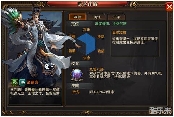 小编今天给大家带来《鏖战三国》诸葛亮的详细介绍,让你对诸葛亮这张卡牌更加了解,多多关注我们《鏖战三国》专区,小编会带来更多的攻略。