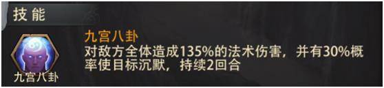 对敌方全体造成135%的法术伤害,并有30%概率使目标沉默,持续2回合