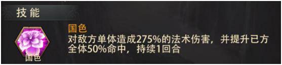 对敌方单体造成275%的法术伤害,并提升已方全体50%命中,持续1回合