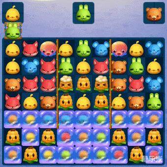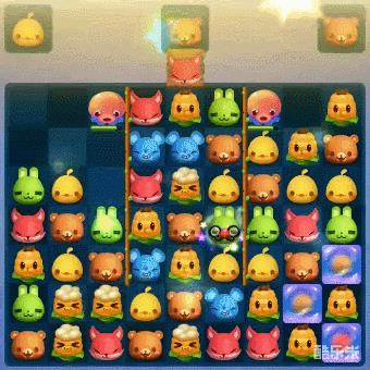 2、移动木桥的下一行,有两个章鱼,会不停的吐出泡泡,阻碍我们收集超级玉米。由于它们的血量较高,匹配消除非常困难,而收集玉米时产生的爆炸又很难攻击到它们,所以并不推荐消除,只要顺带攻击章鱼或泡泡,控制它们下回合的行动即可。