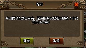 1. 每次挑战需要消耗2点耐力,每日获得5次挑战机会。挑战机会用完后需要消耗元宝购买次数才可再次进行挑战。