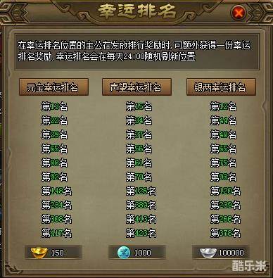 4. 在幸运排名位置的主公在发放排行奖励时,可额外获得一份幸运排名奖励,幸运排名会在每天24:00随机刷新位置