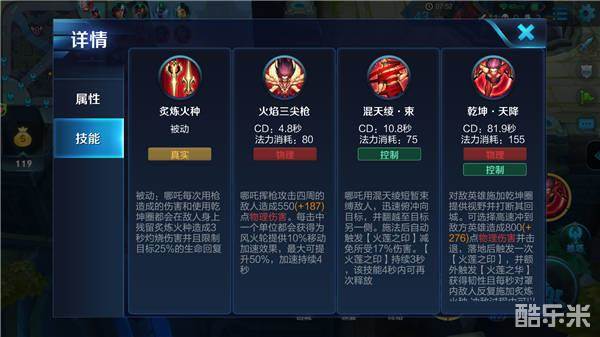技能解析:哪吒的大招有着优秀的开团能力和收割能力,这个技能是一个超远距离的突进技能,能在敌方残血时给予他们致命打击;同时这个技能还可以用来开团,利用大招自带的击退效果打乱敌方阵营,为队友提供良好的输出环境。