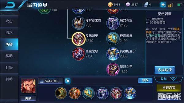 六神装:影忍之足+红莲斗篷+极寒风暴+魔女斗篷+反伤刺甲+贤者的庇护
