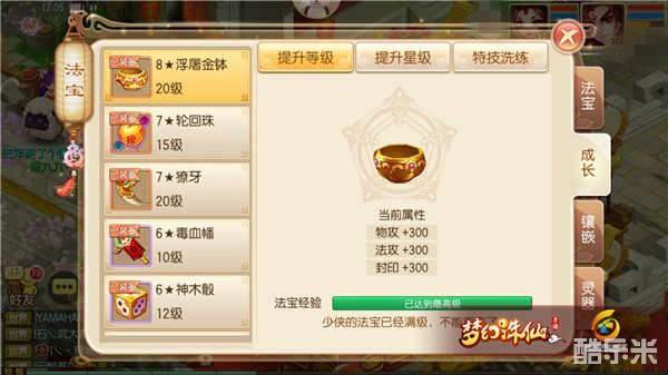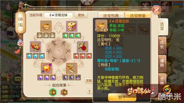 浮屠金钵这件法宝可以提升物攻,法攻,封印这三项属性,浮屠金钵在所有法宝中是属性加成最多的一件法宝,对我们在战斗时的帮助非常大。我们可以通过提升法宝的等级从而提升法宝自身的属性,需要消耗法宝碎片。法宝碎片可以通过日常任务,副本或者直接在商会中购买这三种途径获得。法宝给我们带来的收益是永久性的,不用担心会随着等级的提升而淘汰。提升法宝的星级可以使得法宝解锁相对应的特技,提升法宝星级同样也需要消耗法宝碎片哦!