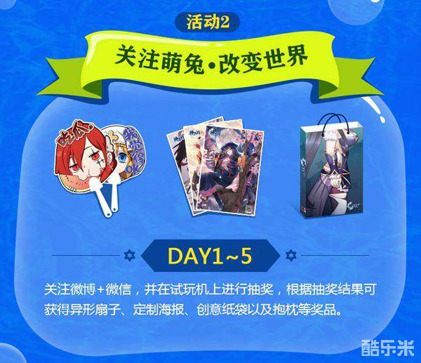 关注神无月官方微博微信即可获得抽奖机会。在展台现场进行抽奖,根据抽到的卡牌的稀有度不同,将有机会获得一形扇子、定制海报、创意纸袋以及方形抱枕等奖品。福利海量,绝对让你拿到手软哦~