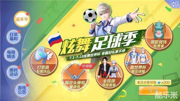 QQ炫舞手游足球季的新版本就为大家介绍到这里啦,在7月7日还可以解锁“全民领绝版套装”以及“萌款背饰免费拿”的福利活动,大家注意活动开放时间不要错过哦!还没有更新版本的童鞋快去更新吧,首次分享活动页面还可以获得200点券哦!