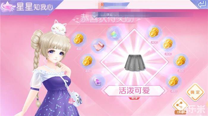 其中的“星星知我心”,是根据友情币来进行抽奖的。玩QQ炫舞手游也很久了,我拥有了很多的游戏好友,每天都会登录游戏跟他们互动,点赞、送花或者互送友情币,今天友情币可算是派上大用场啦!今天在参加“星星知我心”的时候,看到自己可以一次性抽十次,果断下手!一次开十个奖品我都觉得自己很豪气呢!除了金币和打造服饰需要的道具外,我居然还得到了一条“活泼可爱”短裙,太开心啦!