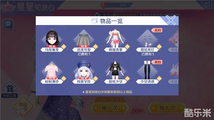 原来在“星星知我心”里可以抽到这么多好看的服装配饰,而这个抽奖机会也是非常容易就可以积累而得的,不知道大家是不是也喜欢这里的衣服,平时大家注意可以与好友互动积累友情币哦!真的很爱QQ炫舞手游,福利多多大家玩的也开心;大家在登陆游戏的时候,记得多多参与抽奖哦,或许下一个幸运玩家就是你哦!