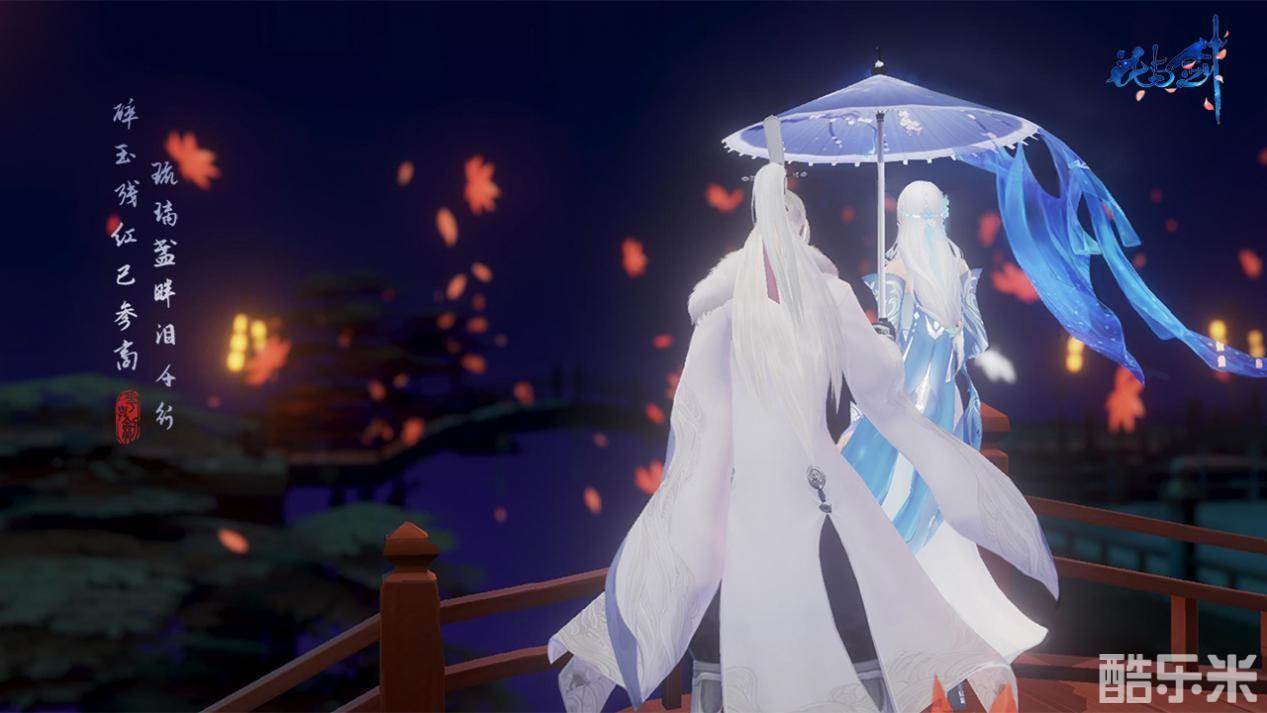 月下长桥,一人抚琴,一人舞剑,如天成佳偶。只是江湖难测,有情的人儿终难相聚……