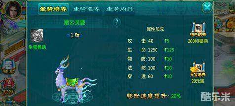 坐骑是玩家们代步用的,坐骑的好坏就是星级的原因以及等级好的坐骑不仅华丽绚烂,而且增幅能力极强,会给玩家们带来大量的战力,我们可以帮助坐骑升级使用道具直接增加经验或者使用银两或者元宝进行培养。