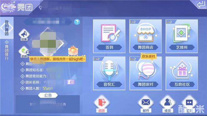 在QQ炫舞手游中,拥有属于自己舞团的小伙伴们都知道,在舞团里有签到、舞团商店、艺修所、音乐汇、舞团派对、互助社区等功能玩法,而在QQ炫舞手游中的舞团也可以算的上是大家强大的后援团,可以帮助大家快速完成一些游戏任务,还可以拿到丰厚的奖励哦!
