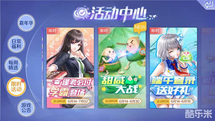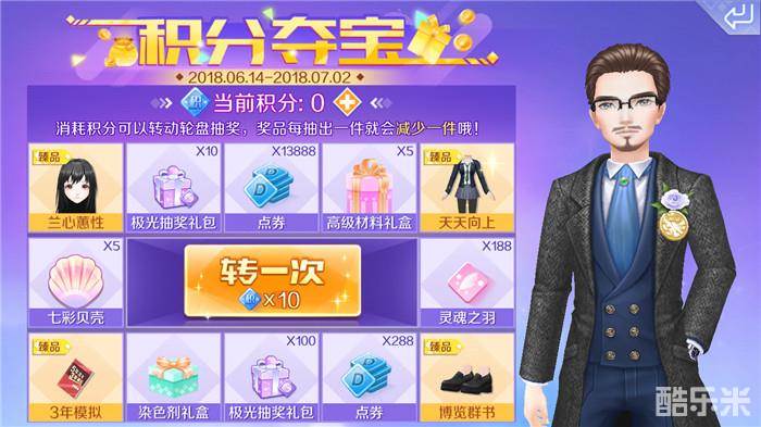 在6月14日至7月2日之间,玩家登陆QQ炫舞手游可以看到,限时活动页面的“逢考必过”学霸套装闪亮登场。在积分夺宝页面,每次花费10积分就可以转动轮盘进行抽奖,奖品每抽出一件就会减少一件,所以不用担心会重复抽取到同一个奖励,这样获得精美学霸套装的几率将会大大增加哦!