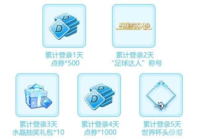 在7月1日-7月15日期间,累计登录游戏,超值福利送不停!更有世界杯专属头像框哟~