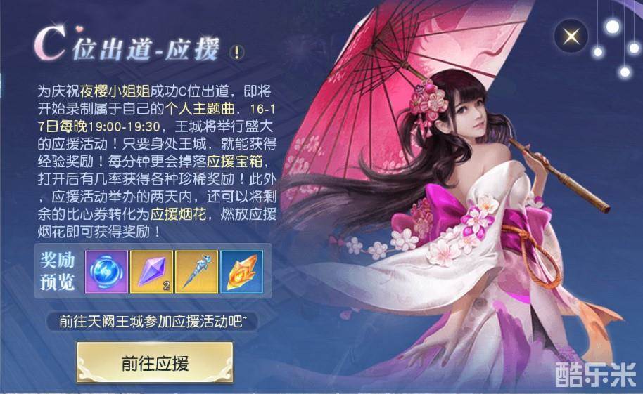 此外使用“本命认证”,即可前往小姐姐的门派驻地参与寻宝、获得丰厚奖励。7月15日决赛之后,还有“C位出道-应援”活动开启,在王城中参加小姐姐的出道庆典、收获珍稀奖励吧!
