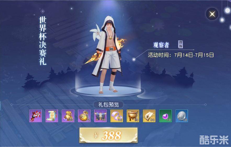 7月14、15日两天,还有“世界杯决赛礼”限时上架!利刃挂饰“观察者”、可交易高级魂印等高级道具应有尽有,一起为世界杯的决赛加油!