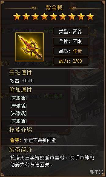 适合装备给骑兵或者弓兵武将,克制步兵武将。