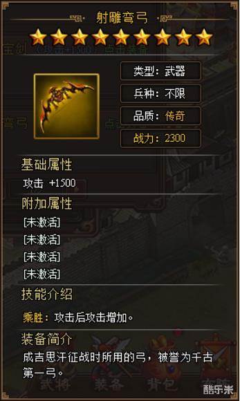 适合装备给弓兵或者步兵武将,克制骑兵武将。